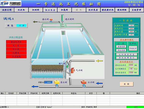 濾池是水廠的核心工藝環節之一,所涉及的設備繁多,采用人工控制難以滿足生產需要, PLC為核心的濾池自動控制系統。全面實現濾池自動恒水位恒流速過濾和反沖洗,系統技術先進、功能豐富、可靠性高。